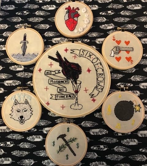 So I finally finished the six little hoops I was making for each of the main soc characters just in time for BookCon (and I guess pride month lol) and even though I didn’t get to meet @lbardugo which I’m totally not still super sad about, I’m still happy with how these turned out considering these are the only things I’ve ever embroidered so far, they were all super fun to make and I can’t wait to start making more for other books (and more six of crows ones bc let’s be real this is my actual favorite book)