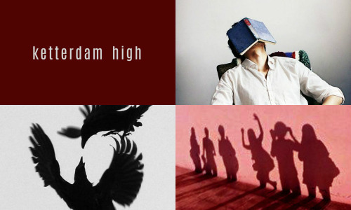 → ketterdam high: the dregs of the teens; public school, no uniforms, but a lot of people wear black; mascot: crows