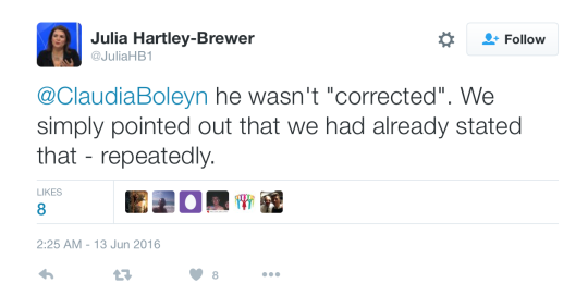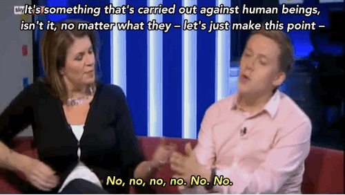 I actually exchanged some words with Julia Hartley-Brewer (the woman in the video) shortly after this segment was aired and this is what she said: