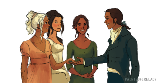 »I recently saw the 2005 Pride and Prejudice movie for the 872938th time and felt the impelling urge to doodle a P&P/Zutara mashup. Elizabeth/Katara and Darcy/Zuko blend together so well I think no explanation is needed.