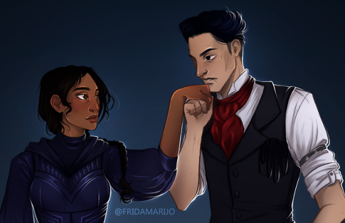 Inej Gahfa and Kaz Brekker from Six of Crows and Crooked Kingdom.