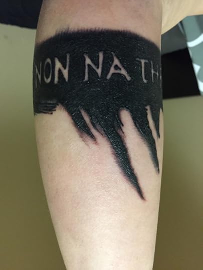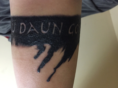 Man, this is absolutely stunning. I love it. The phrase is “No one fights for me”, and it comes from episode 304, where Lexa squares off against Roan. This might be my favorite The 100 tattoo yet. Incredible work!