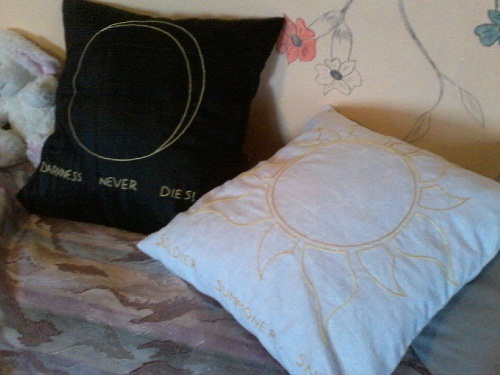 A huge THANK YOU to lovely lady with magic in her fingers for making these beautiful pillows for me. ^_^