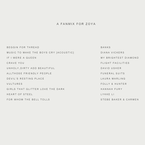 Ruin and Rising Collection ⇄ a fanmix dedicated to Zoya Nazyalensky (listen)