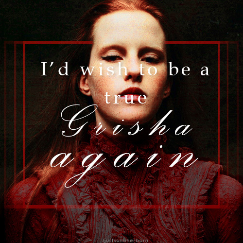 If I could wish for anything in this world, it wouldn’t be jewels or a coach or a palace in the lake district. I’d wish to be a true Grisha again, of course—but short of that, I’d settle for a lock on my chamber door.