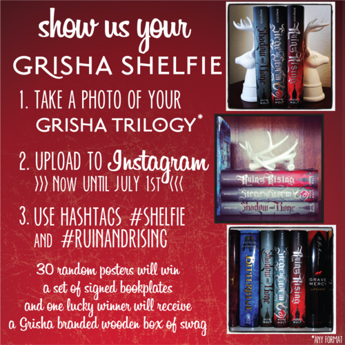 Thirty people will win THREE of these shiny, silver, signed bookplates (one for each book). They are ROUND and did I mention SHINY? One lucky instagrammer will win a limited edition Grisha Trilogy keepsake box with some fancy swag inside (including goodies from hebeldesign)!
