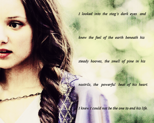 The stag didn’t move as I approached him, not even when I reached out my hand and laid it on his warm muzzle. His ears twitched slightly, his hide glowing milky white in the deepening gloom…I looked into the stag’s dark eyes and knew the feel of the earth beneath his steady hooves, the smell of pine in his nostrils, the powerful beat of his heart. I knew I could not be the one to end his life.