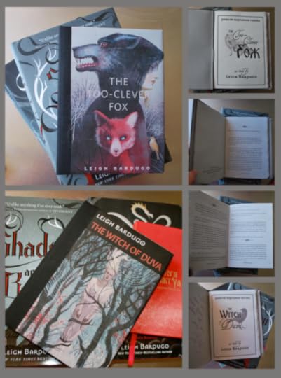 In honor of the cover release of Leigh Bardugo’s new Ravkan folktale Little Knife, I thought I would share pictures of my hand bound edition of her first two. Both of her previous stories, The Two Clever Fox and The Witch of Duva, are contained in one volume. You simply flip it over to read the other story. I love seeing it on my shelf tucked in next to Shadow and Bone.