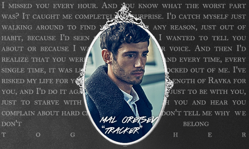 he leaned against the window, and the gilded frame came into sharp focus. “do you think it would be any different with your tracker beside you? with that lantsov pup?”