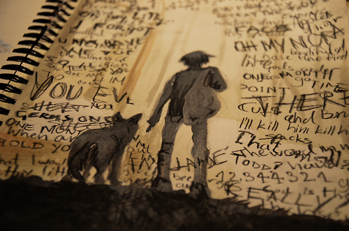 Inspired by the first few chapters of The knife of never letting go by Patrick Ness. pencil + watercolor + white acrylic paint + charcoal