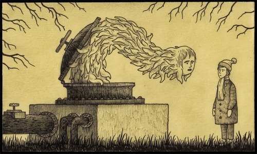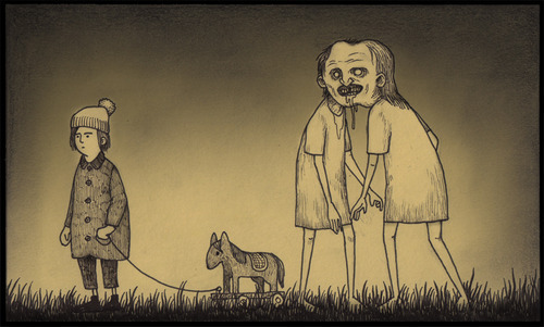 Born in Denmark in 1978, John Kenn spends his days writing and directing television shows for kids. When he has time between TV and his twins, he draws his creepy little monster drawings on post-it notes, peeking into a little window into a different world, made entirely on office supplies.