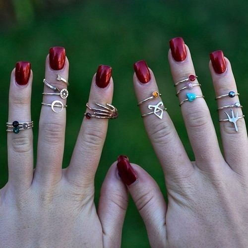 Tracker, Sun Summoner, and Darkling midi rings on middle finger, left hand. I just got some and they’re so cool.