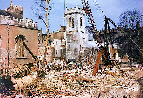 For many, photographs from World War 2 have been seen only in grainy black and white. But new colour images have emerged that show the full horror of the destruction inflicted by Nazi bombers during “The Blitz” in London. The capital sustained 76 continuous nights of attacks, from September 1940 to May 1941, which obliterated more than one million homes killed about 40,000 people The powerful images were released to mark the 70th anniversary of the launch of Winston Churchill’s ‘V for Victory’ campaign on July 19, 1941.