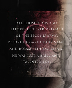 We don’t know much about the firebird, so I gave Alina a fire dress to make her complete. “Every so often, she dreamed of the firebird. It caught her up in wings of flame and held her as she burned.”