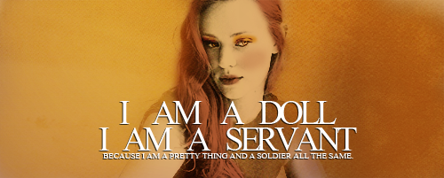 It hurts, but I can bear it. Because I am a doll, and a servant. Because I am a pretty thing and a solider all the same.