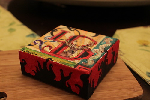 Leigh’s surprise art gift! This is what I’ve been hiding for nearly a week. I was already doing a horde of these for my teachers, so I figured why not. Leigh’s was much more fun, though, cause I got to hide all the book-y stuff in there :) Unfortunately, since I wasn’t there to give it to her, I couldn’t explain it all.
