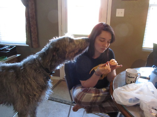 11:30 am, the party is about to get rolling. Seamus wants to 'help'.