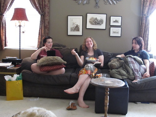 We gathered in the morning, we gathered foodstuffs (nuts! fruit! cheese! sausage! borscht!) and by noon we were settled in and reading furiously.