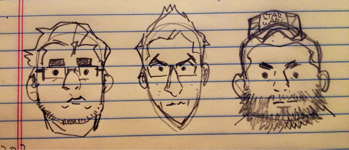 Today, in a storyboard meeting, the ever-caricaturing Ryu Ki Hyun drew Mike/Bolin, Me/Mako, and Joaquim/Meelo.