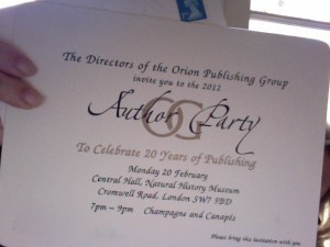 In other news, I've mentioned before that Shadow & Bone will be published in the UK by Orion's new YA imprint, Indigo (under the title The Gathering Dark). I recently got this lovely invitation to the Orion Group Author Party in London. Champagne! Canapes! The Natural History Museum! Sigh. Almost tempted to pack my headdress and hop the next British Airways flight. Who wants to be my date?