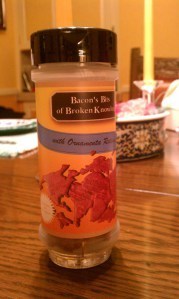 She also showed me a bento box of wordplay, faux graham crackers loaded with filthy latin poetry and accompanied by a compressed marshmallow made of paper that bears the face of Sir Thomas More burned into its surface (S'more, geddit?). Then there was Bacon's Bits of Broken Knowledge– a decidedly unique take on Sir Francis Bacon's worldview.
