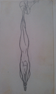 The Canticle of Freaks yielded more bad poetry and some wretched assignments on Invisible Son and My Name is Asher Lev, but inside I also found these peculiar little sketches. I was never much of an artist, but I'll admit to loving their creepiness.