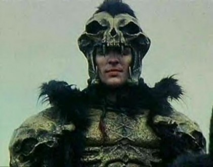For those of you who don't know, that's Clancy Brown as the Kurgan, the eeeevil warrior who will pursue the hero across time until they battle it out for The Prize. LATER, we'll learn that the Kurgan is a rapist and a murderer and he'll spend the rest of the movie as a gross, sweaty skinhead who wears atrocious leather vests.