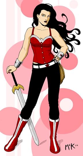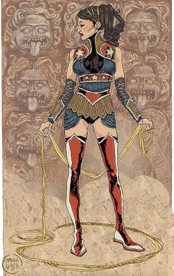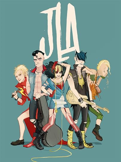 And finally, on a mostly unrelated note, I want to share one of my favorite superhero redesigns ever. Below, the marvelous Annie Wu gives us the Justice League of America as a punk band (from left to right: Flash, Superman, Wonder Woman, Batman, drunk Aquaman). Diana Prince isn't in armor, but that girl looks like she will MESS YOU UP.