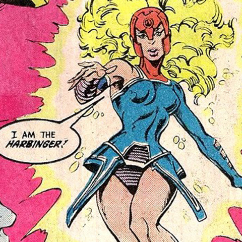 Blog-appropriate aside: I just learned that Harbinger is also a DC Comics superheroine from the 80s… who wears a deeply whack helmet.
