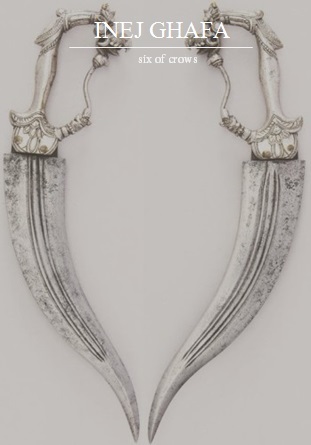 The spear makes Inej look like an assassin of some sort. And the knifes…