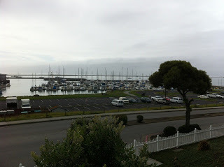 So last week, a dear writer friend invited me to a revision retreat on the coast. It's a different coast from the one I grew up on -- the sand is lighter, the harbor more populated, the seaside restaurants a little more cosmopolitan. But we worked to the sound of the rocking boats and the foghorn. And one afternoon, I sat on the balcony and wrote until my fingers grew too cold to type.