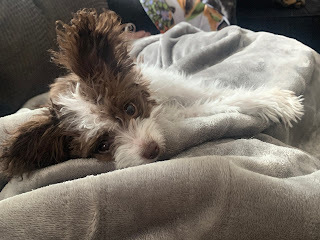 Did I tell you I got a puppy? He is a toy Aussiedoodle and is not quite three pounds. He's a tiny bundle of joy and he is LOVING all the snow we got yesterday. His favorite thing is to jump in the snow and stick his face in it. It makes me laugh!