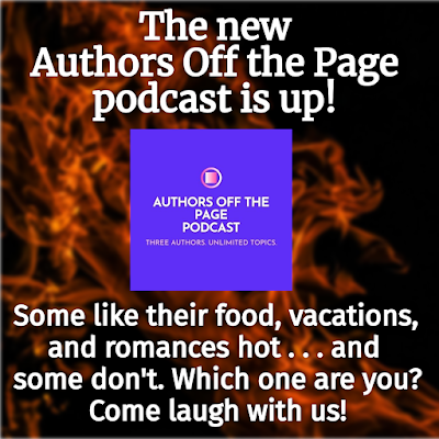 Have you listened to the new Authors Off the Page podcast yet? We had a lot of fun discussing what things we like hot (weather and cookies included) and laughed together over some "hot" romance. I hope you tuned in and got to laugh with us!