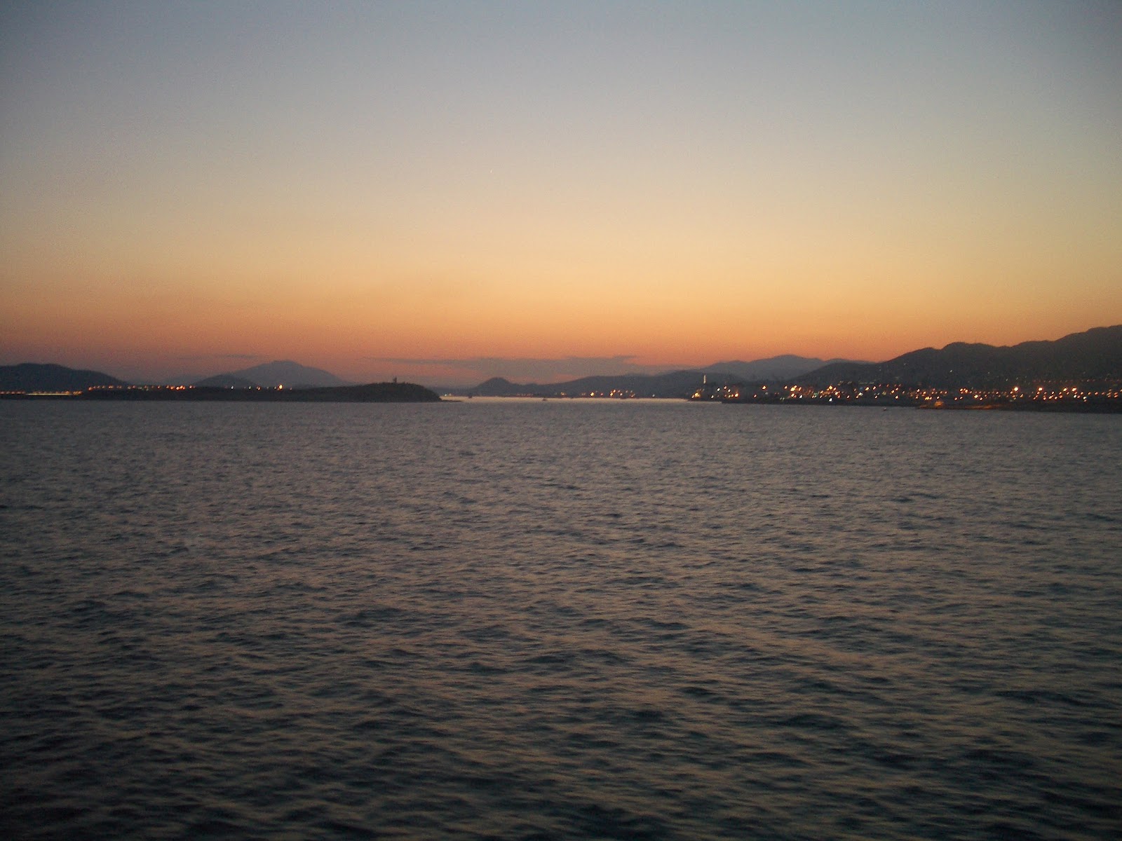 Outside, the wind is the only cold part. The air itself is tepid, like warm water surrounding our skin. People congregate on the upper deck above us, where a covered bar and benches provide a blockade from the breeze. I love the isolation of the lower deck, especially on the narrow side where we are alone.The lights of Iraklion twinkle like grounded stars, inviting us to recreate the local myths. We are travelers and passengers in a deep moving gulf that opens into the Mediterranean sea. I ca...