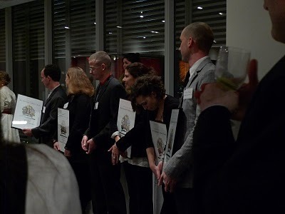 So there I am. I am the person standing up there with my head down looking at the ground to make sure my knees didn't buckle and that I am, indeed, still standing. Everyone else seemed pretty cool and collected up there.