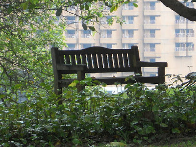 This first kiss scene took place on a park bench in the middle of a traffic circle.