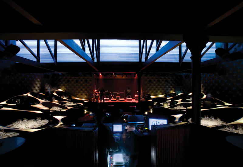 A huge restaurant like set up facing a decently sized stage that has newcomers and veterans perform. From a top view it resembles a maze with multi-coloured lights all over. "Funky" is the word that best describes the place. Bar and live kitchen side by side. A casual seating area outside for the smokers or those who wish to stay away from the music.