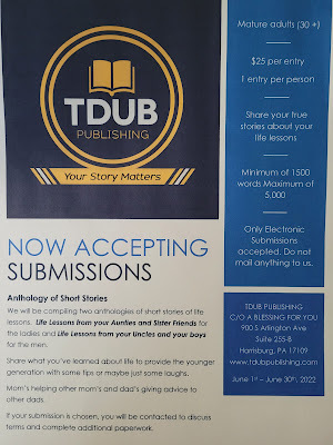 Whew it's been a long minute since I addressed you all. I'm like a bear I hibernate in the winter lol. The weather is finally getting nice and I'm back with some very exciting news. My publishing company, TDUB Publishing is putting together two anthologies. The theme is life lessons. Mature ladies can share yours with the younger ladies and the same goes for the men. The world is changing but we should continue to listen to and pay attention to the advice from our elders. They do know a little something about life.