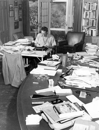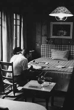 Sheldon Van Auken wrote by the fireplace in a little one-room cottage he called VanCot. It was his home and he wrote on a manual typewriter on on a portable stand.