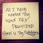 I once was asked to speak at a conference to tell stories and give testimony of God’s provision in our lives. I spoke for an hour telling of God’s great faithfulness.