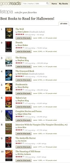 I'm somewhat blown away today, 31 October 2011, to find that The Well has been voted number one in a Goodreads poll for the 'best books to read for Halloween'.