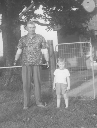 Anyone who's read my memoirs, From Our House and Turning Bones, knows that my father was a farmer who lost both of his hands in an accident in November, 1956. He wore prostheses the rest of his life, and he continued to farm. My relationship was uneasy with him until my later teen years when we reconciled. Whatever fire I have comes from him. He taught me how to endure, persevere, fight. He also taught me how to be generous, how to work, and how to enjoy the small moments of life. On Father's Day, I'd like to share a brief section from From Our House. In this passage, I'm describing how I cared for my father one summer when my mother, a grade school teacher, was at Eastern Illinois University, finishing her bachelor's degree, and my father and I were alone on our farm. This scene takes place on a Friday when we were getting ready to travel to Charleston to pick up my mother so she could spend the weekend with us. Both my father and my mother taught me how to love through actions, and I hope I've captured exactly that in the passage that appears below this next picture of my father and me on a distant Father's Day.