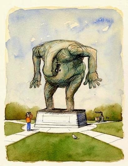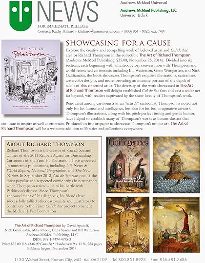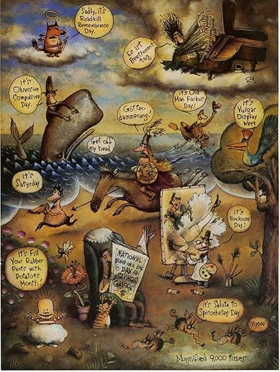 So on Tuesday, November 25th, everyone walked just a bit straighter and carried themselves with a new-found dignity, a dignity they could not have mustered a mere 24 hours before Tiny children, barely human, settled down and behaved without urging. Stray cats & dogs and other lost souls wandered home, and everywhere the joyous sound of reunions could be heard, if you listened real hard and didn't let the racket from cash registers pushed beyond their capacity demand for my new book, THE ART OF RICHARD THOMPSON, 224 pages jam-packed with laffs and full color pictures for the low price of only $35.00!