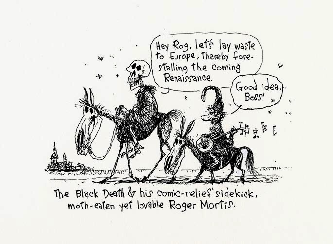 I'm forever on the lookout for the thinnest connection among old drawings that might lead to a blogpost and this time the theme is "skeletons." It could just as easily have been "desperation" or "bottom of the barrel." But skeletons are a good theme; most people have at least one so it's relatable.