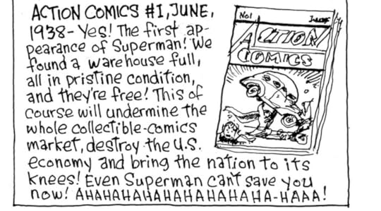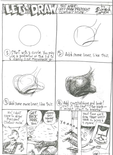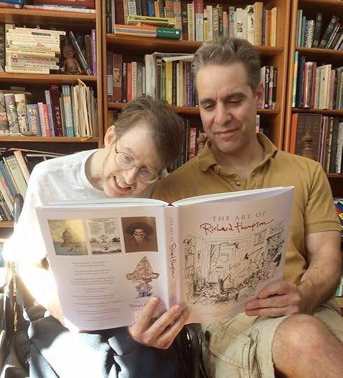 Here, one of the authors, Nick Galifianakis, reads the story of Art of Richard Thompson to the present narrator, who looks dubious.