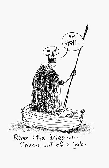 This is a reference to Greek mythology; legendarily, Charon rowed the dead to Hades across the river Styx, and, though not actually a skeleton, I'll bet he got mad as hell at people who made fun of him for having a girl's name. Now here's an illustration from the Post Magazine-