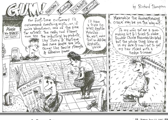 Strip steaks.Some form of jazz.Barbecued ribs.No, ha-ha. While all of those would be welcome the package will actually contain AN ADVANCE COPY OF THE ART OF RICHARD THOMPSON! SQUEEEEEEEEEEL!!