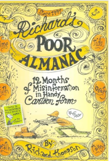 I hate to alarm anybody but there are only ten copies of Richard's Poor Almanac left on the planet. I had 500, bought at firesale rates from a sinking publisher, but now those are gone. Like the passenger pigeon they once darkened the skies, but, alas, no longer. And who is to blame? All the greedy people who're hoarding copies of RPA in false walls, toasters, attics and under floorboards, like in Fahrenheit 451.
