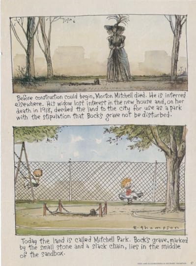 Here's something so old I'd almost forgotten it. For the Post Magazine of June 21,1998 I did a piece suggested by my friend Bruce Guthrie, a close student of history, taken from a tourist guidebook to odd places. I even went to the playground so the drawing would be accurate. Strangely, this listing was gone in the next edition. My thanks to Mike Rhode for ferreting this out.