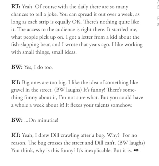 Here's another teaser quote from that impatiently-awaited, incipient best-seller the Art of Whosis (as seen on TV!*), But this time I include some actual text, taken from an actual PDF of the actual book, to sweeten the deal! Once again the part of "BW" is played by Bill Watterson while I assay the rôll of "RT" (we did funny accents),